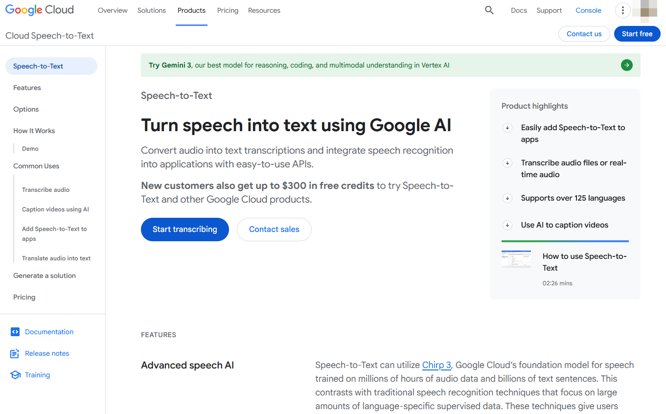 Решение от Google работает в облаке и использует машинное обучение. Новые пользователи получают кредиты для тестирования.