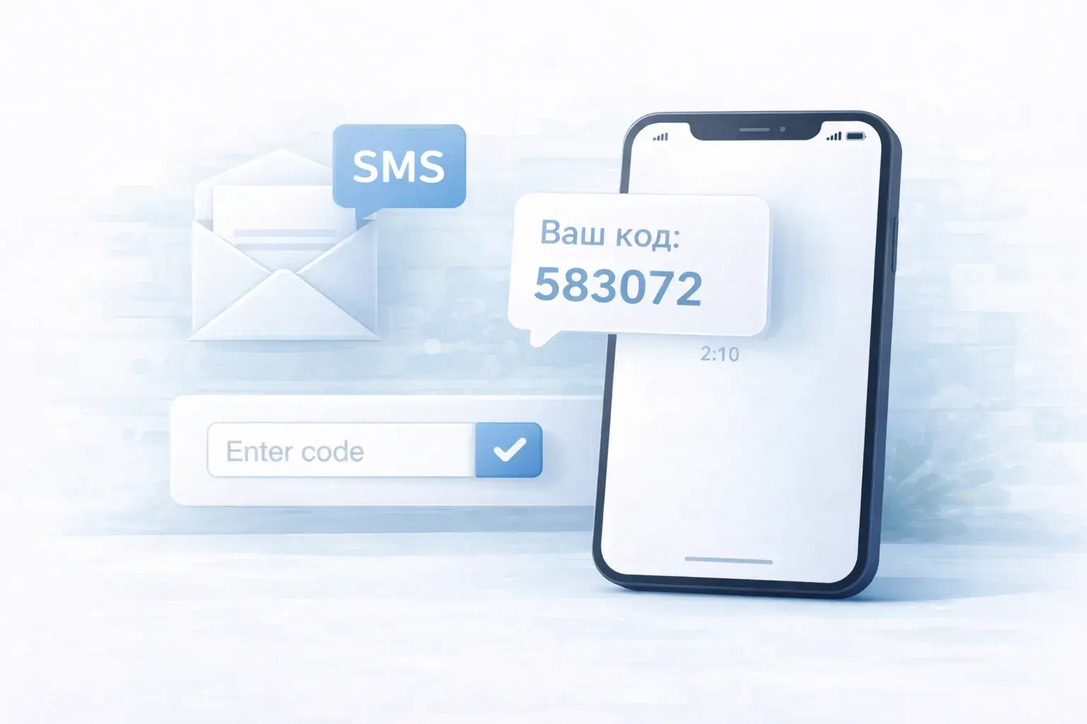 - Система генерирует случайный код из 4-6 цифр и отправляет его на привязанный номер телефона.