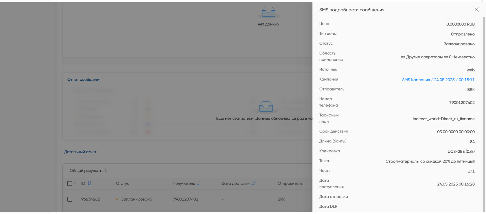 - Просрочено — истекло так называемое "время жизни сообщения". Это настраиваемый параметр: сколько времени система будет пытаться доставить SMS, если с первого раза не получилось.