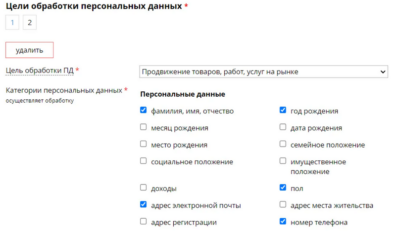 - Опциональный — согласие на получение рекламных рассылок