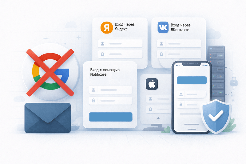 Для e-commerce, iGaming и финтеха оптимальная стратегия — собственная гибкая система авторизации на базе Notificore, которая даёт полный контроль, мгновенную доставку кодов, защиту от мошенников и масштабируемость. В дополнение — ID крупных платформ как альтернативный вариант входа для части аудитории.