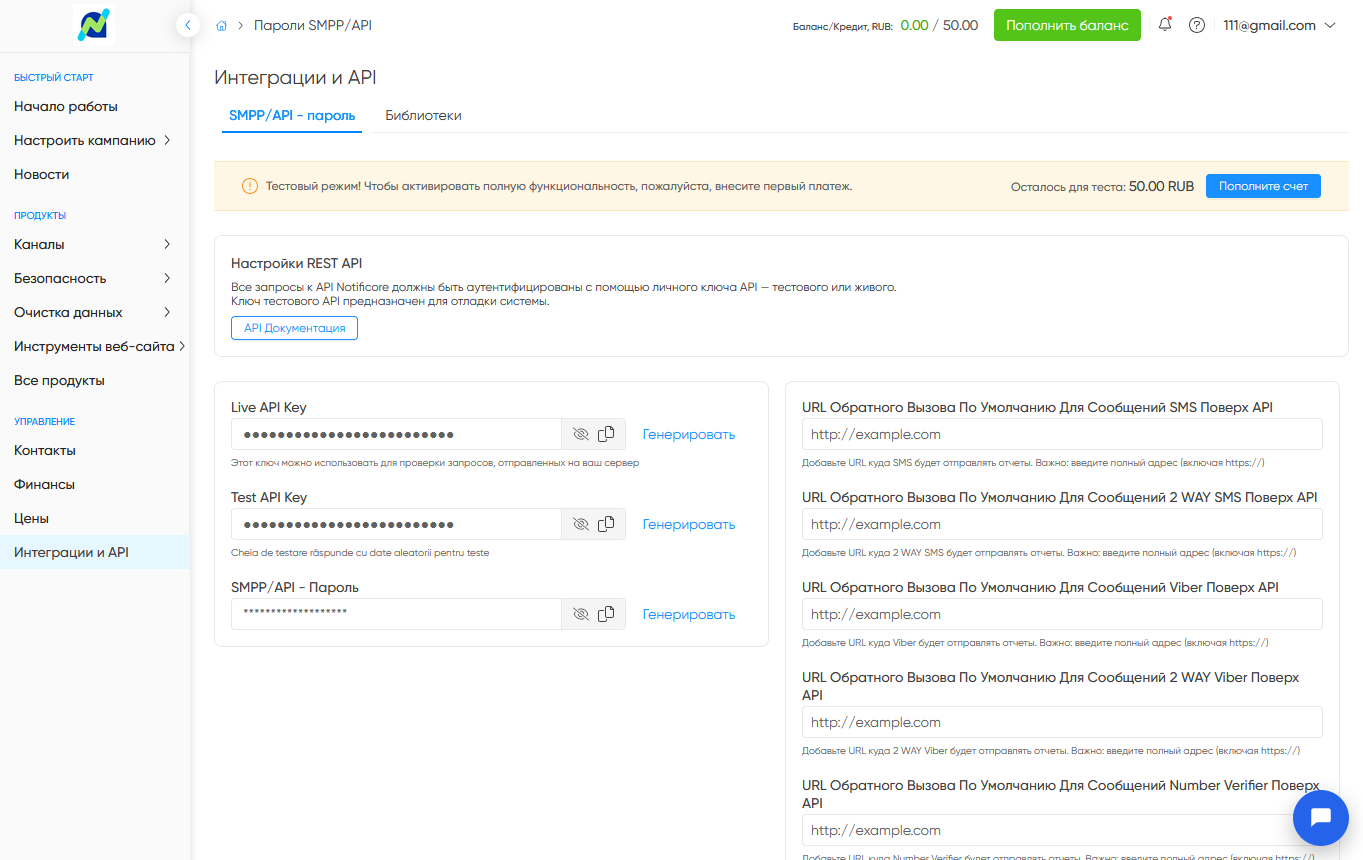 Notificore — это платформа для сервисных email-рассылок, SMS-рассылок и голосового ассистента, которая поддерживает оба протокола. Можете начать с HTTP API, а при росте объемов подключить SMPP для максимальной эффективности. Необходимые опции есть на странице SMPP/API-пароль в разделе интеграций и API.