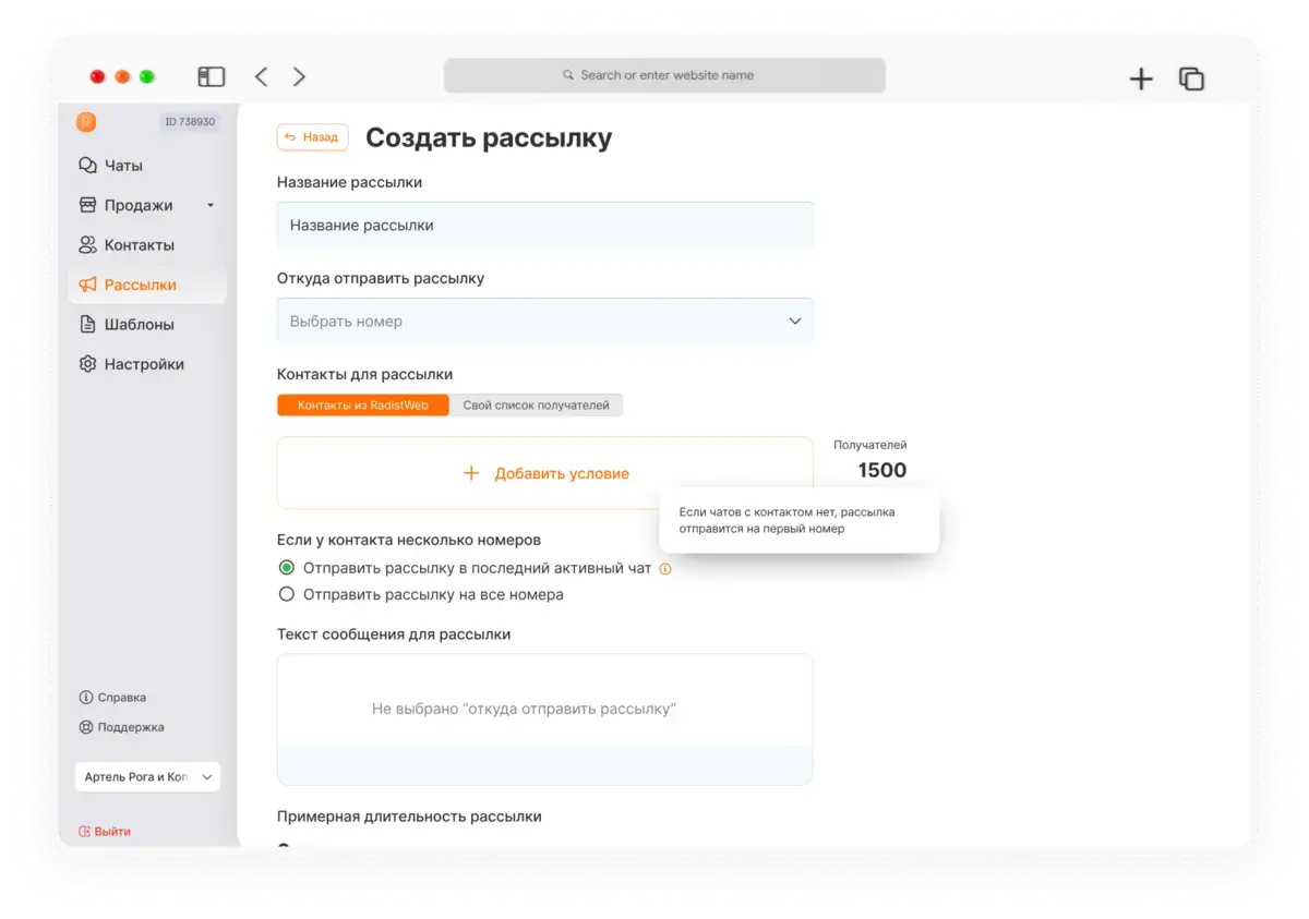 Для исходящих рассылок функциональность тоже есть: персонализированные сообщения, сегментация, сценарии через CRM. Но если говорить честно, основная сила сервиса — в управлении входящим потоком, а не в массовых рассылках.
