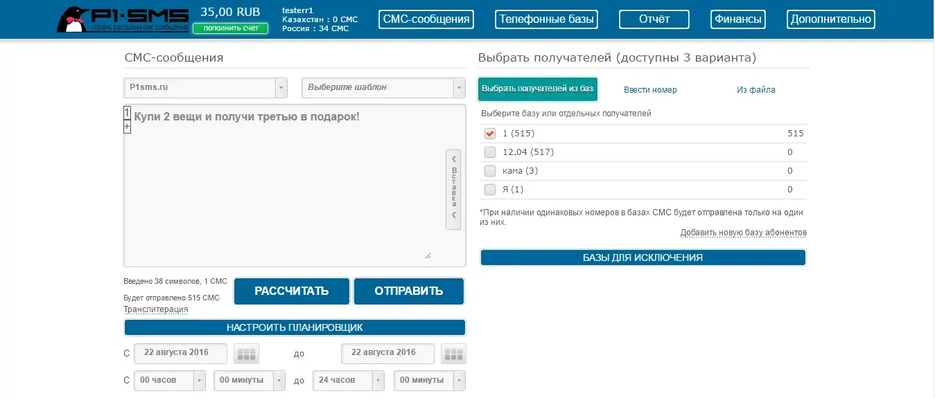 P1SMS — сервис, который давно работает на рынке SMS-рассылок и в какой-то момент добавил поддержку мессенджеров, в том числе MAX. Это делает его понятным выбором для тех, кто уже использует платформу для SMS и хочет расширить коммуникации.