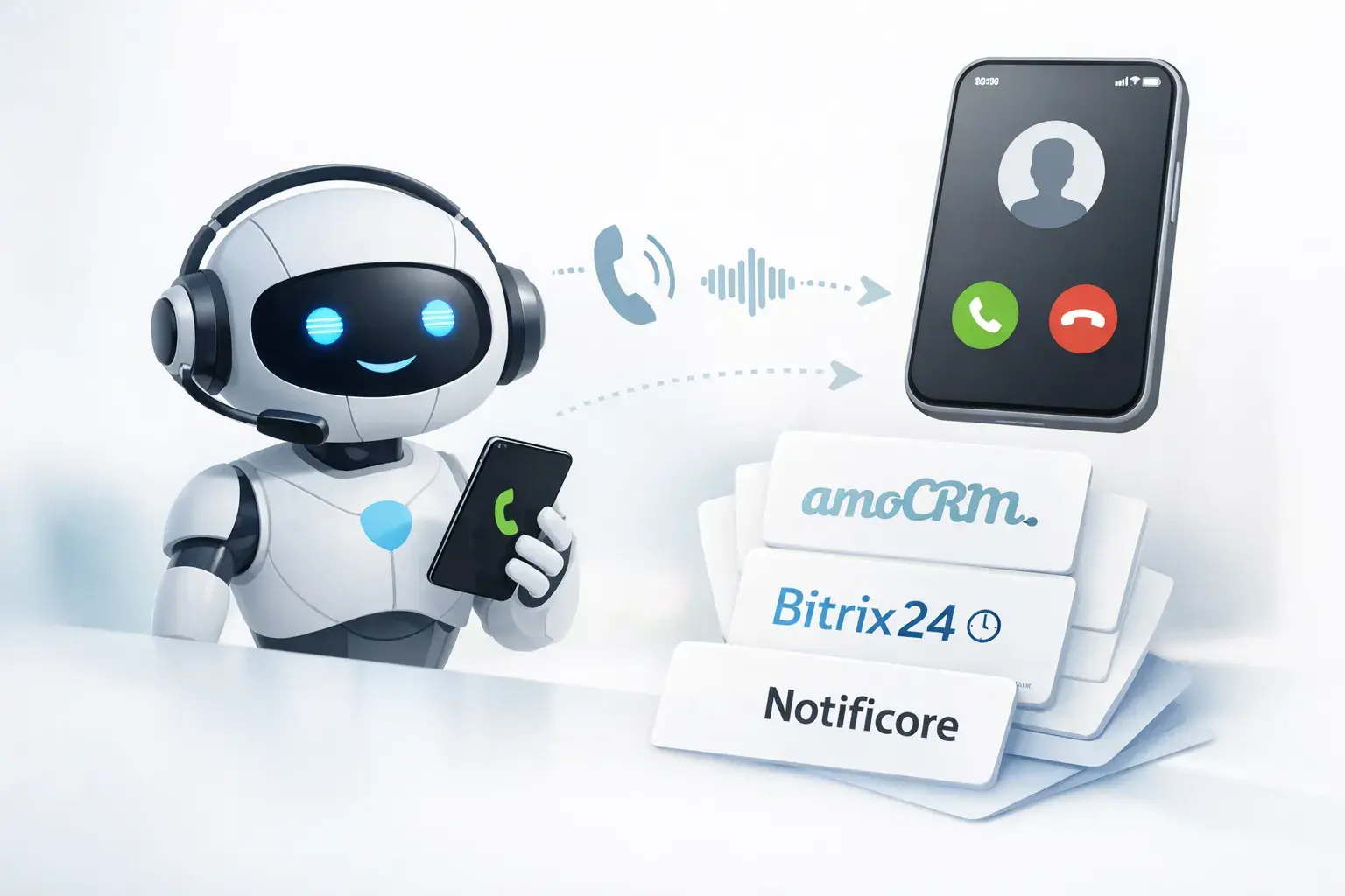 - интеграция с CRM: робот прозванивает базу, тёплые лиды отправляются на нужный этап сделки